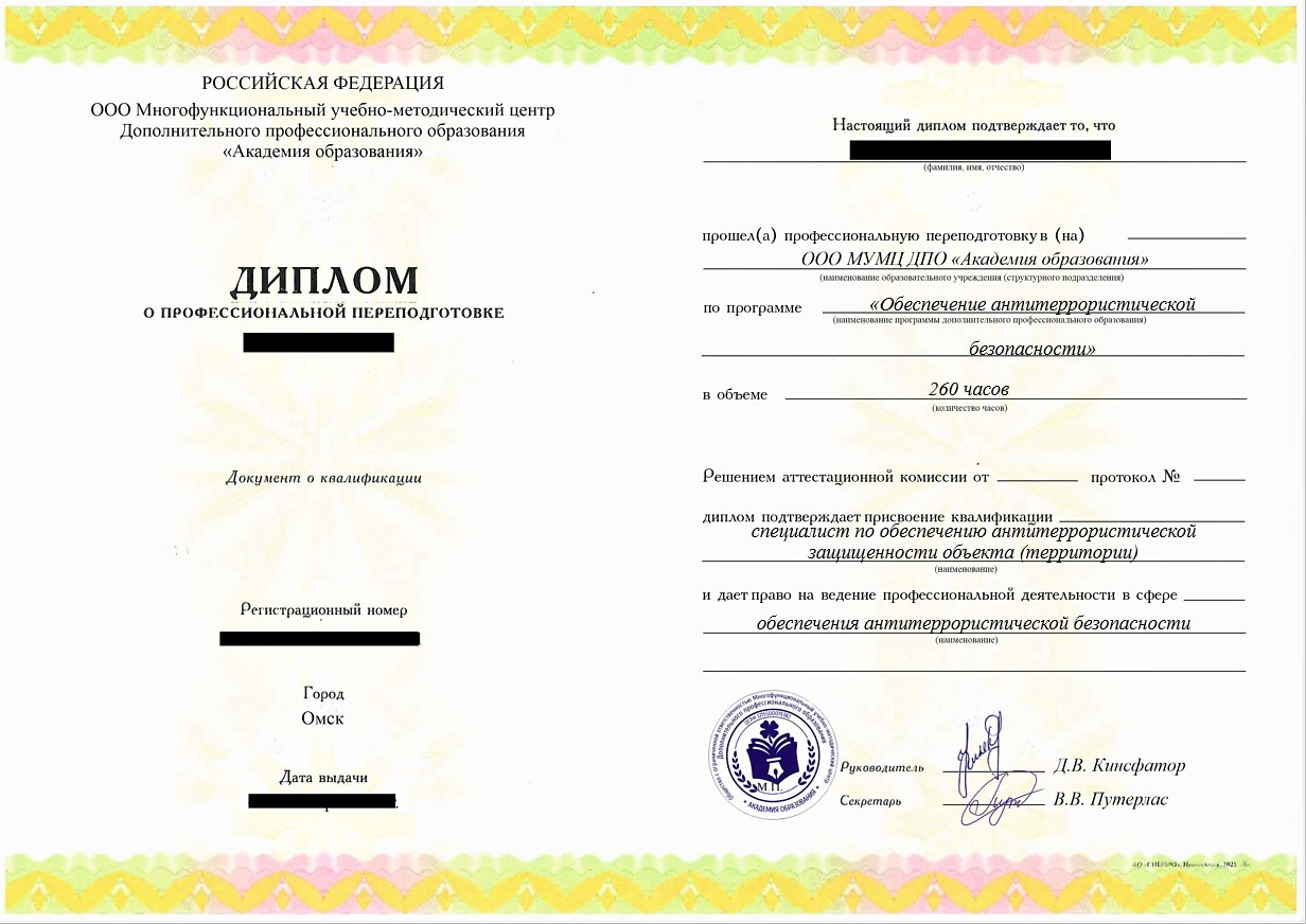 - Диплом о профессиональной переподготовке установленного образца. Срок действия: бессрочно